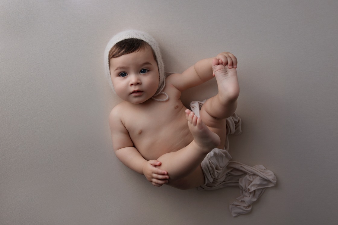 Tu bebé todavía no se mantiene sentado, ya no es posible hacerle una sesión de recién nacido pero igualmente está en una etapa preciosa que merece ser recordada. Lo ideal es esperar a los 4 meses para hacerla así nos aseguramos alguna risa y puede que ya se como los pies.